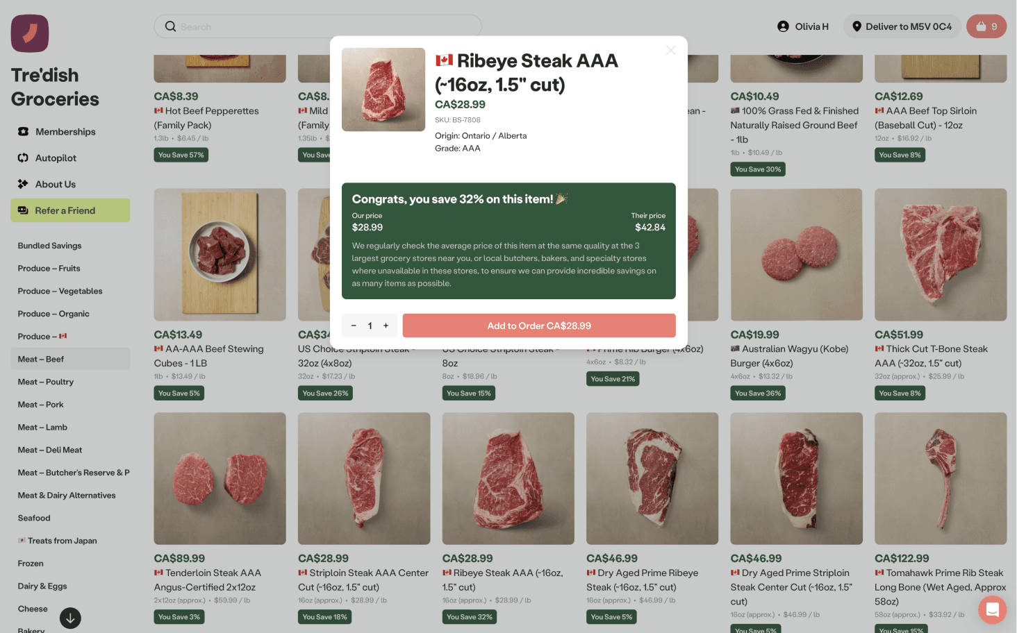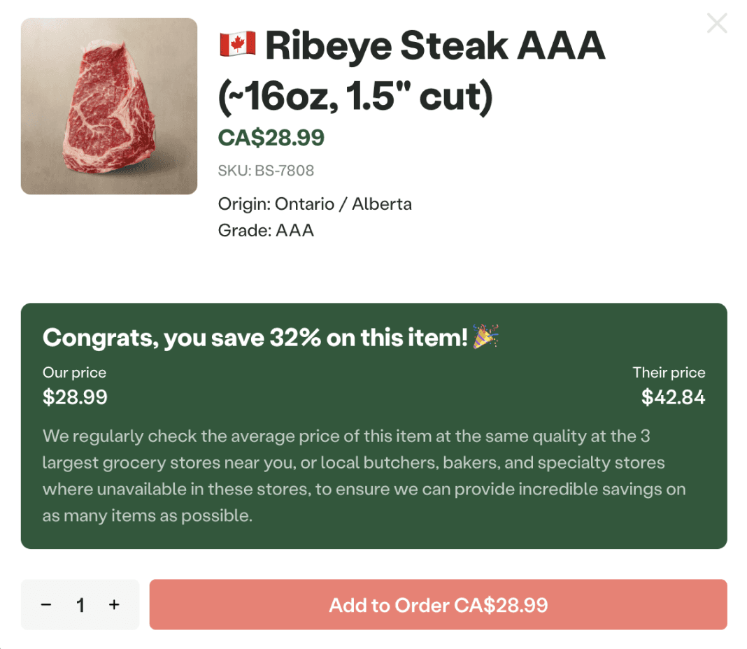 We launched Transparent Pricing, a first-of-its-kind product feature that shows customers real-time price comparisons against their local grocery store at both the SKU and basket level. This made savings visible, often averaging ~25% per order and removed the need for blind trust, reinforcing transparency as a key brand differentiator.