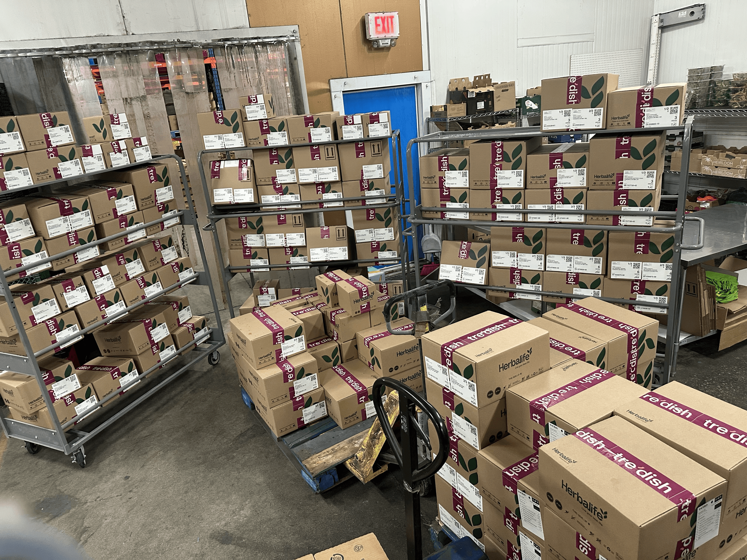 Storage and pick and packing through a third-party electronics warehouse, supported by 2 outdoor refrigerated and freezer trailers